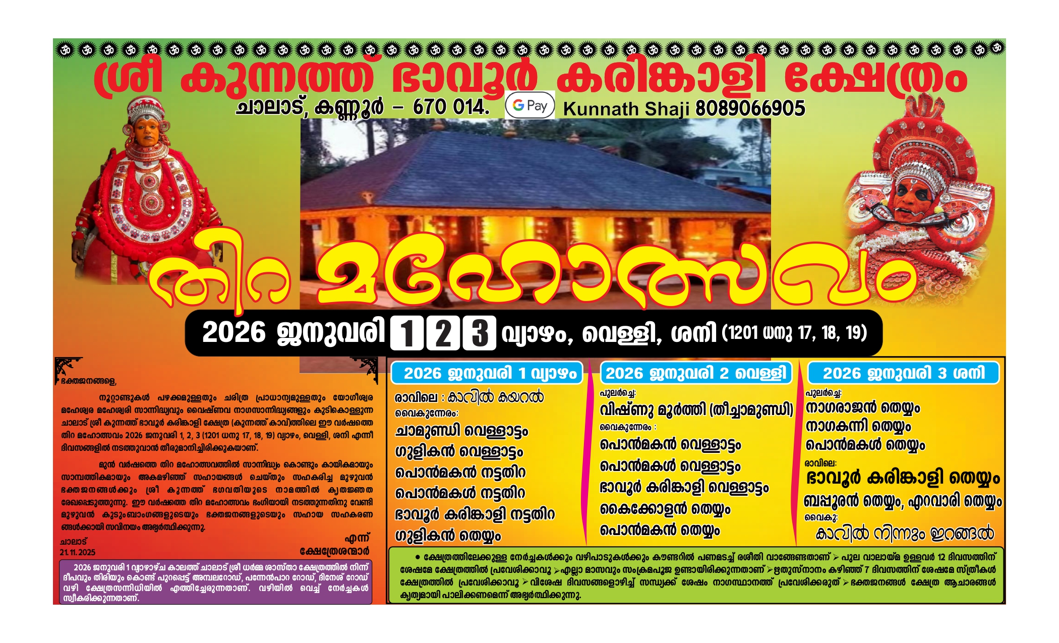 2026 തിരുമഹോത്സവം: ജനുവരി 1, 2, 3 (1201 ധനു 17,18,19)